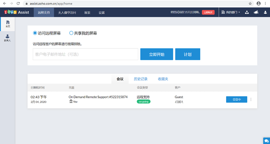 1、 首先登录到 Zoho 的官网,在客户服务板块中点击“远程控制”,进入到assist界面,在界面下拉后点击“访问 Zoho Assist”,经过简单几步的注册,就可以开始15天的免费使用。