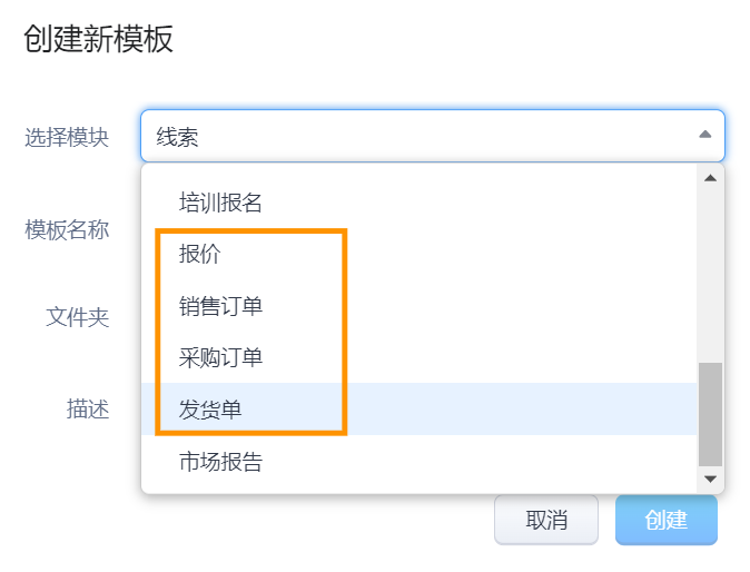 在之前的邮件合并中,只能为线索、联系人、商机、客户以及自定义模块创建邮件合并模板。本次更新后,我们扩展了邮件合并模块的适用范围。用户可以为报价、销售订单、采购订单和发货单这些库存模块创建邮件合并模板。