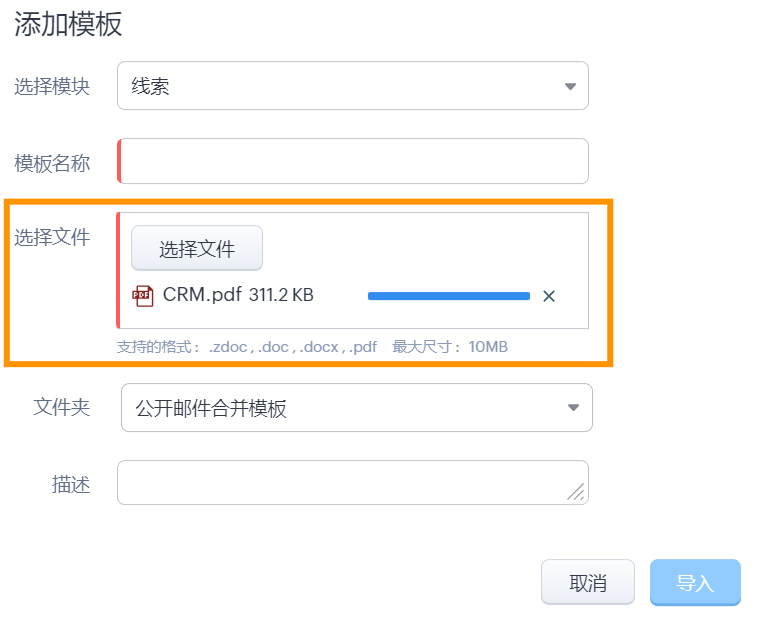 这次更新后,除了现有的导入模板格式(ZDOC、DOCX和DOC)之外,也支持PDF文件。PDF文件最大支持10MB。