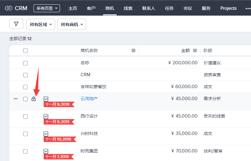 在列表视图中,被锁定的记录前会显示出一把锁的图标,方便大家快速识别出那些被锁定记录。