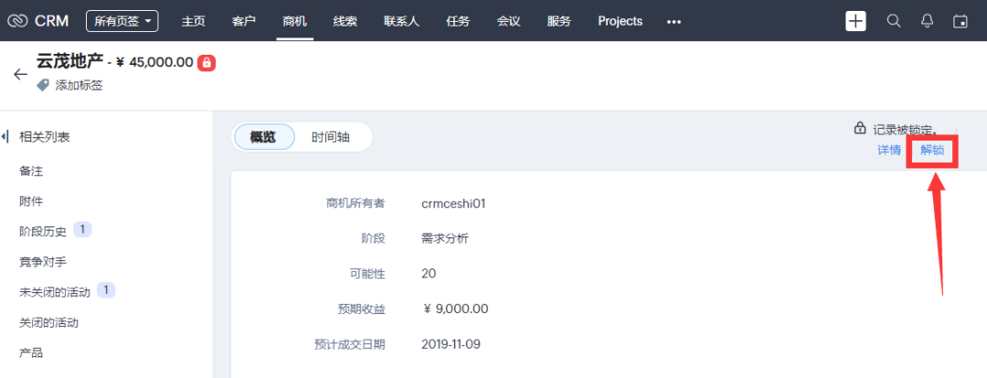 既然有锁定,就得有解锁。Zoho CRM中那些已经被锁定的记录,如何解锁呢?