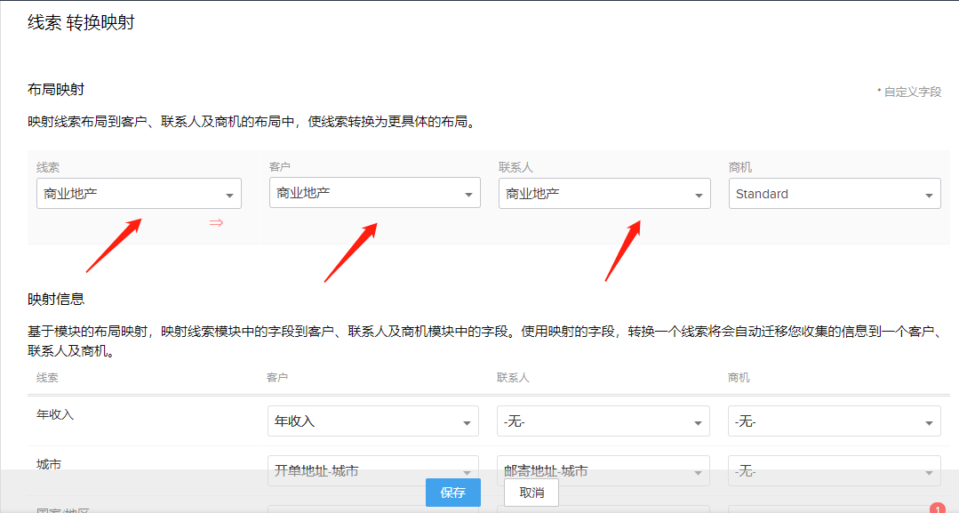 这个方法解决了在单个模块中管理不同需求的问题,需要启用跨模块的字段映射。也就是说,在转换线索时,您需要确保线索中的值,可以分别映射到联系人、客户、商机下的对应布局中。