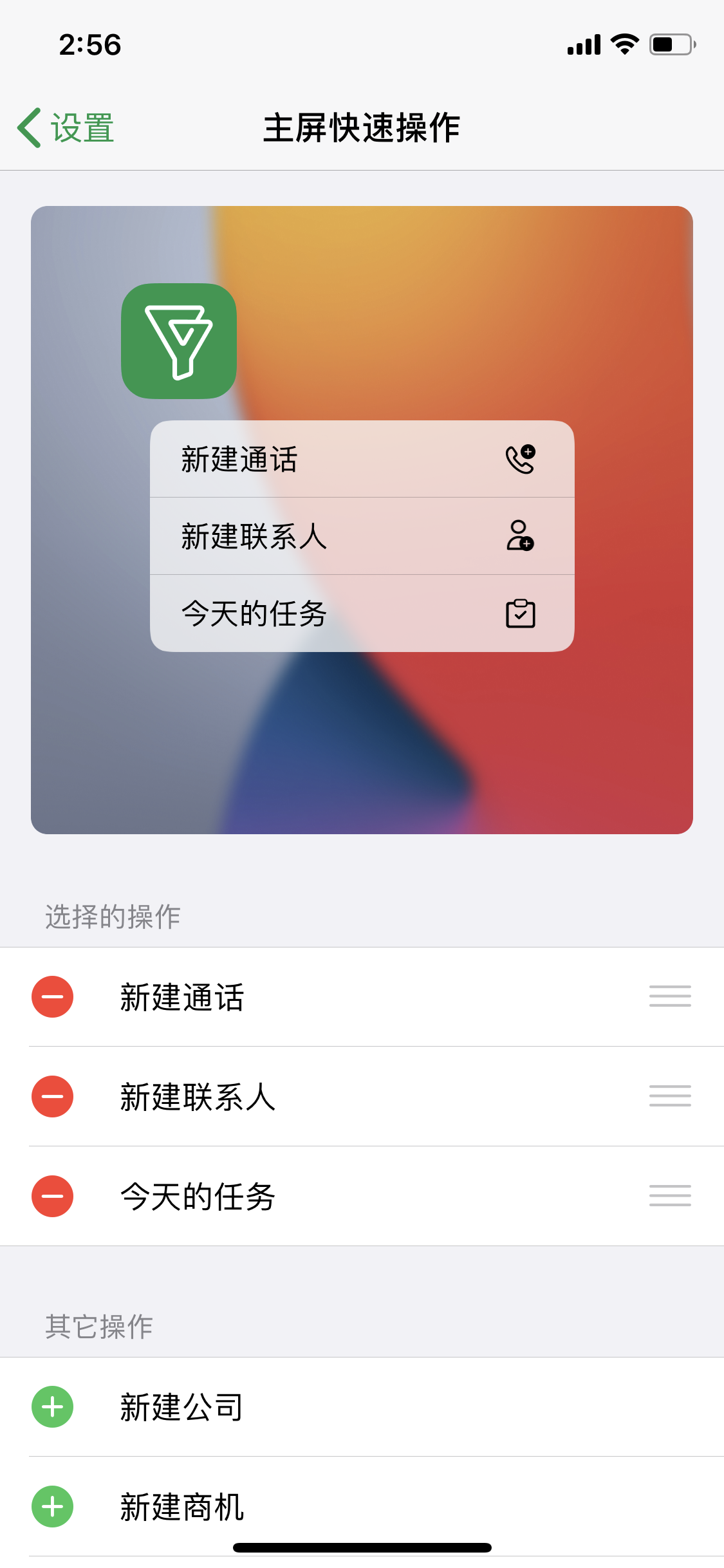 选择您想要快速访问的操作,将它们添加到主屏幕。长按Bigin 应用图标查看操作。