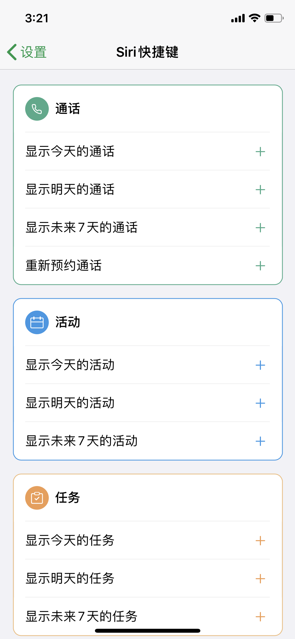 为频繁的操作创建快捷方式,并为每个操作创建自定义短语,以便Siri运行快捷方式。例如,添加短语“显示今天的任务”来创建一个显示当天任务列表的快捷方式。