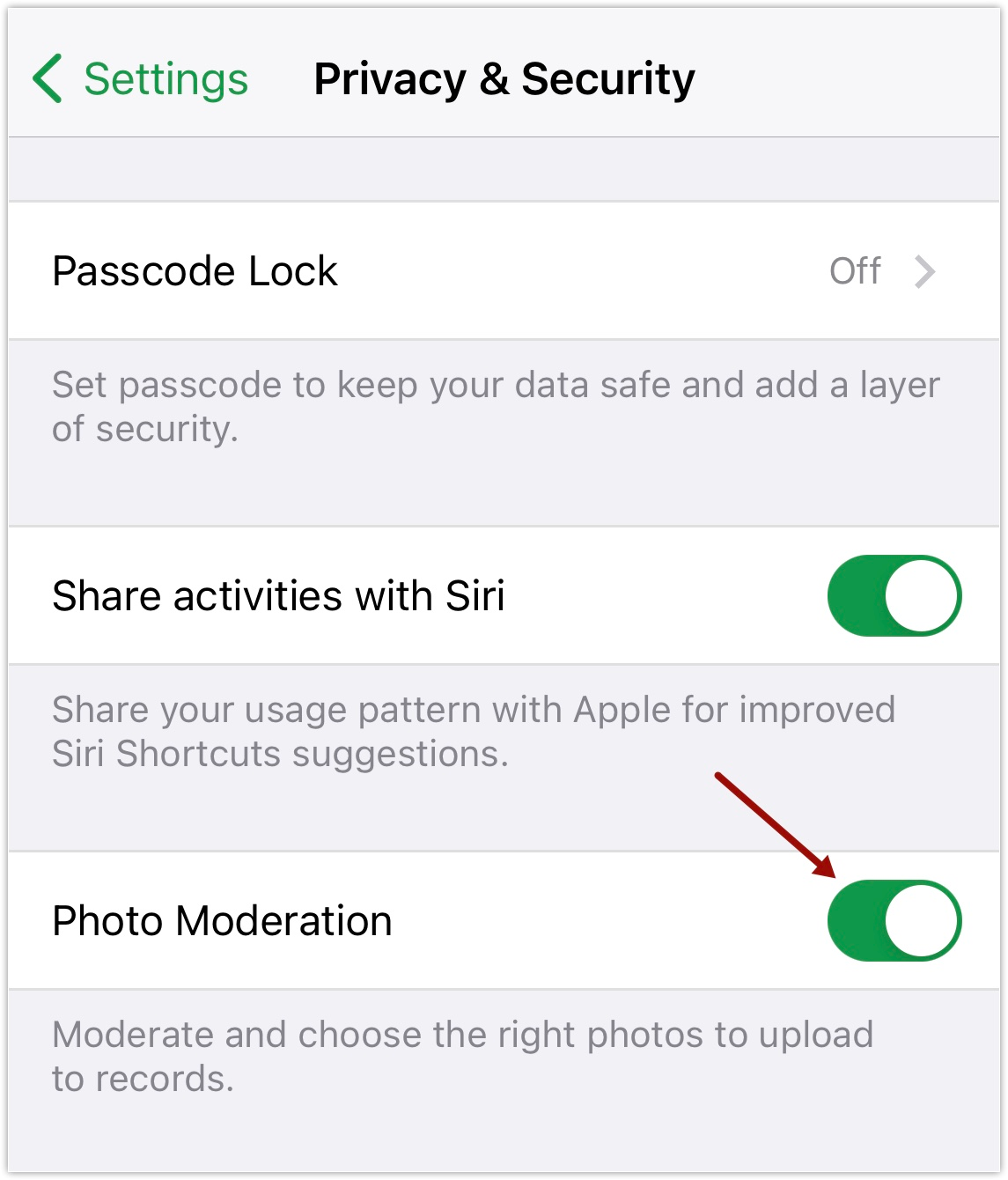 对于所有用户,默认情况下,Bigin 的移动端应用程序中会启用照片审核功能。