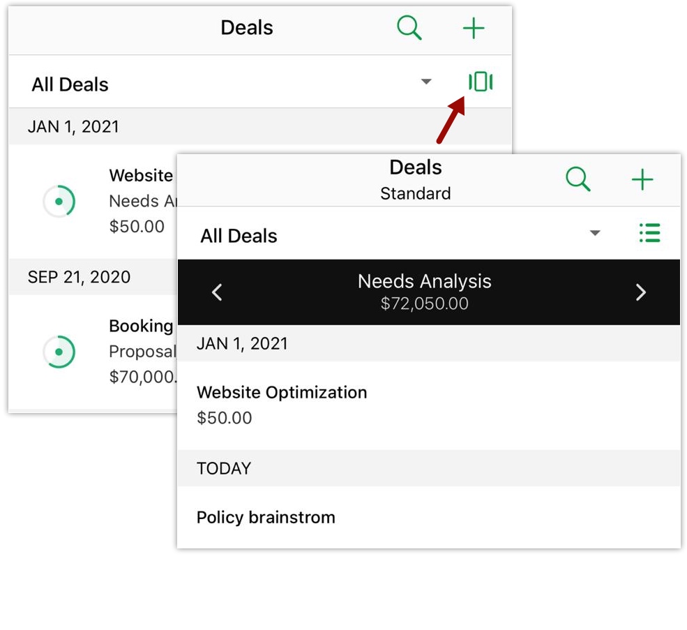 销售管道视图会根据商机阶段分类记录。这仅在“商机”模块中可用 如要查看销售管道中的商机,请执行以下操作 在“商机”模块中,点击销售管道图标。 点击箭头以查看每个阶段中的记录。
