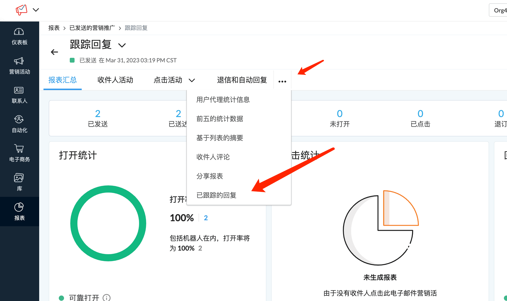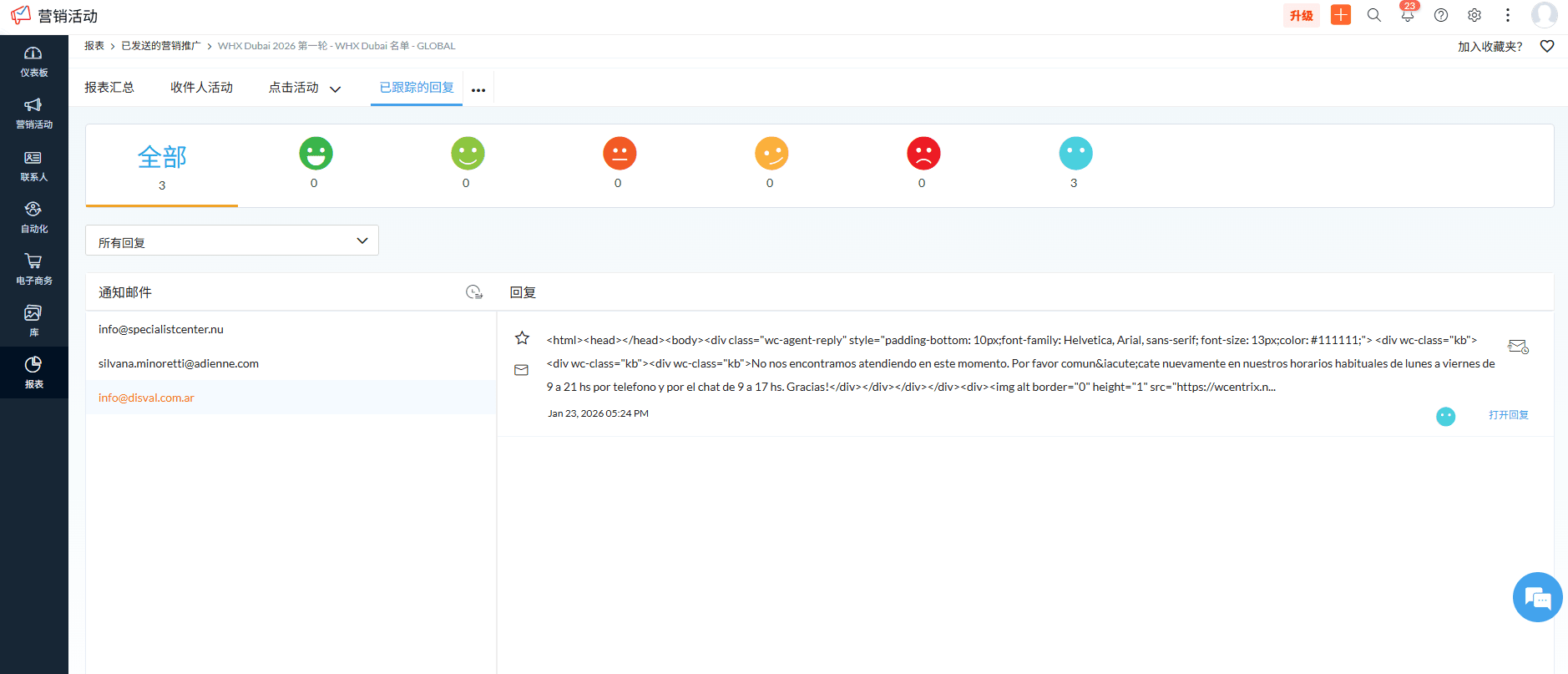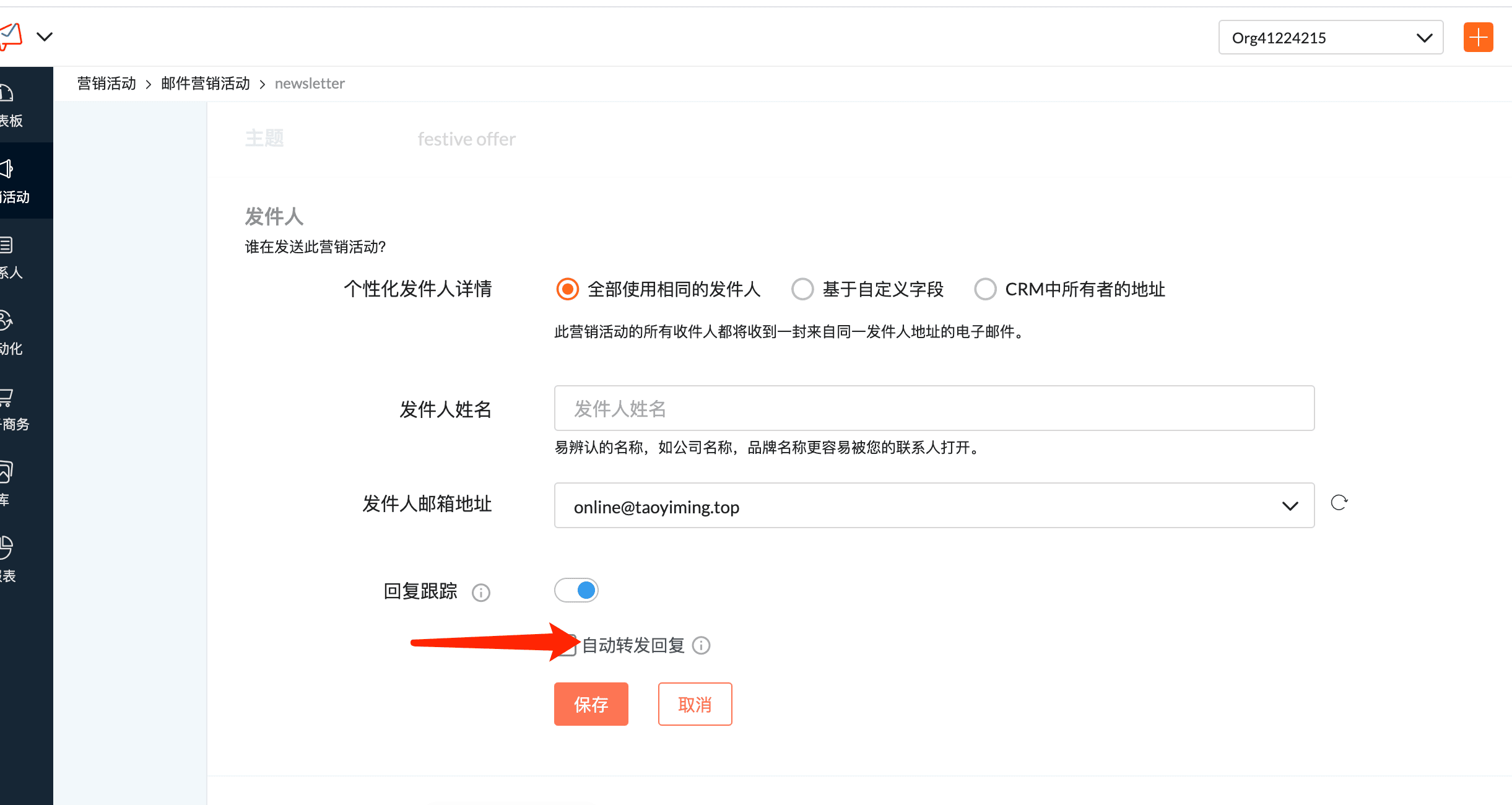启用回复追踪,客户回复会被Zoho campaigns追踪,在追踪的回复中可以看到,如果要把回复转发到其他邮箱,要设置自动转发。