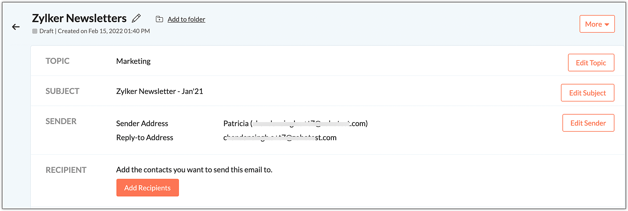 - 发件人姓名- 添加可识别的名称作为发件人名称,以提高电子邮件的打开率。
