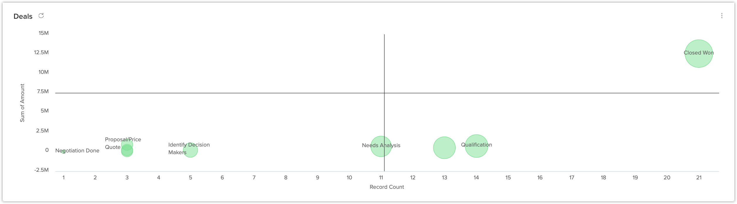 - 您定义的用于可视化数据的指标(X和Y轴)。例如,X轴 - 商机数量,Y轴 - 金额总和。
