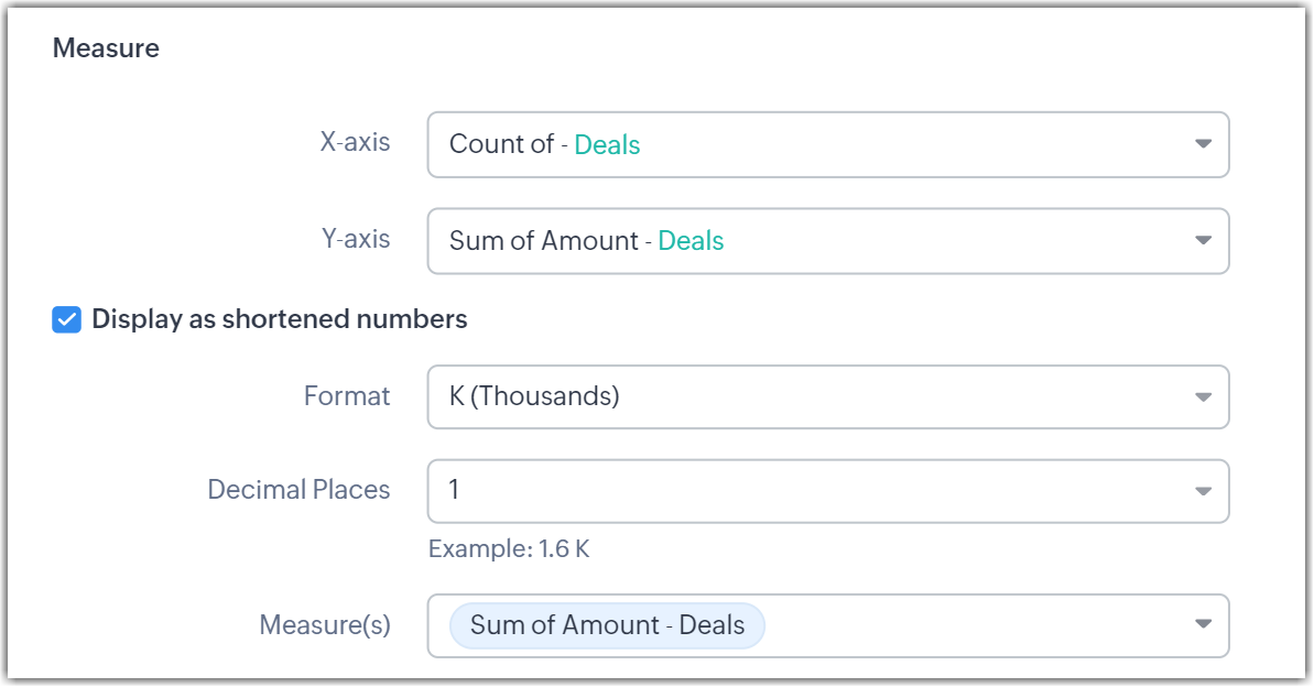 - 如果您希望大数字以简写格式显示,请启用"以缩短的数字显示"。设置格式并选择小数位数。