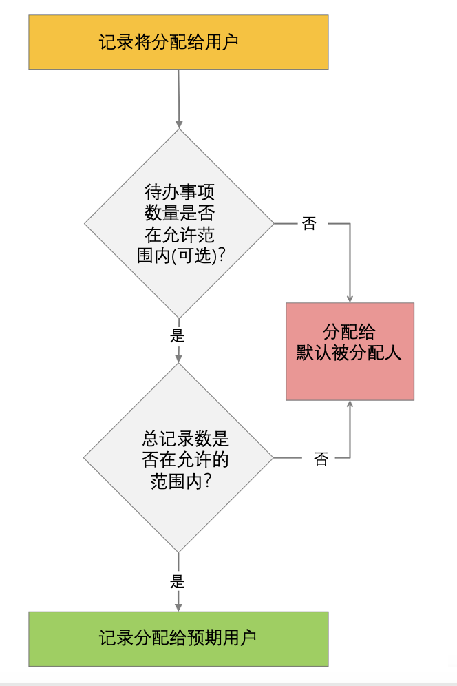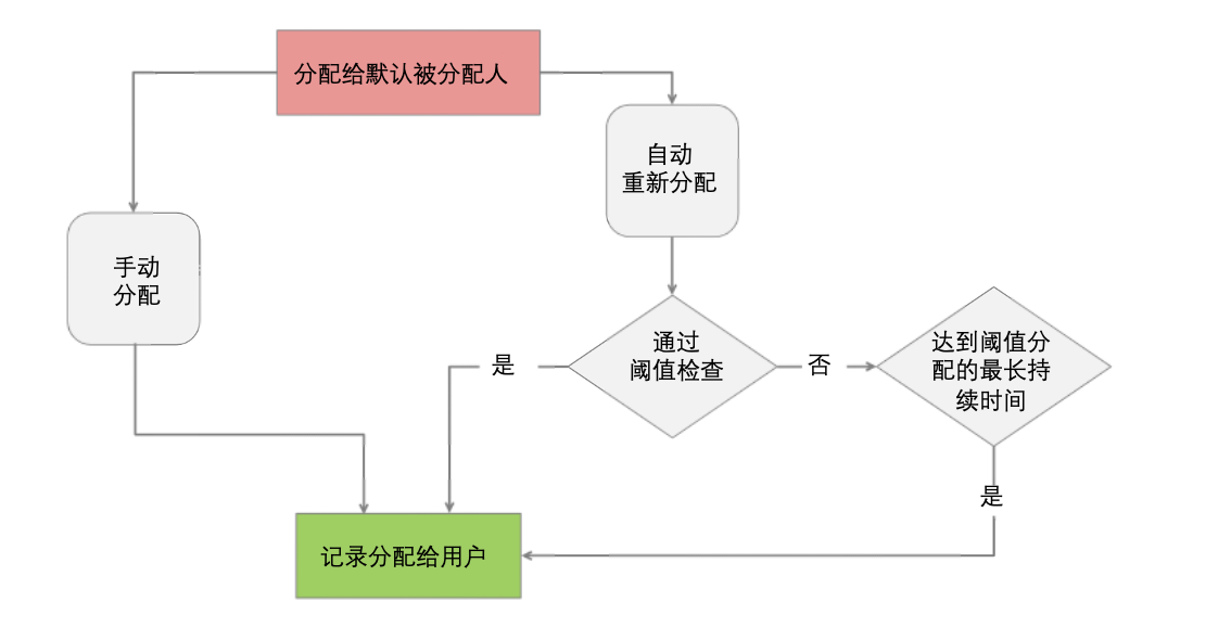 - 先进先出,即先分配添加到默认被分配人的记录。