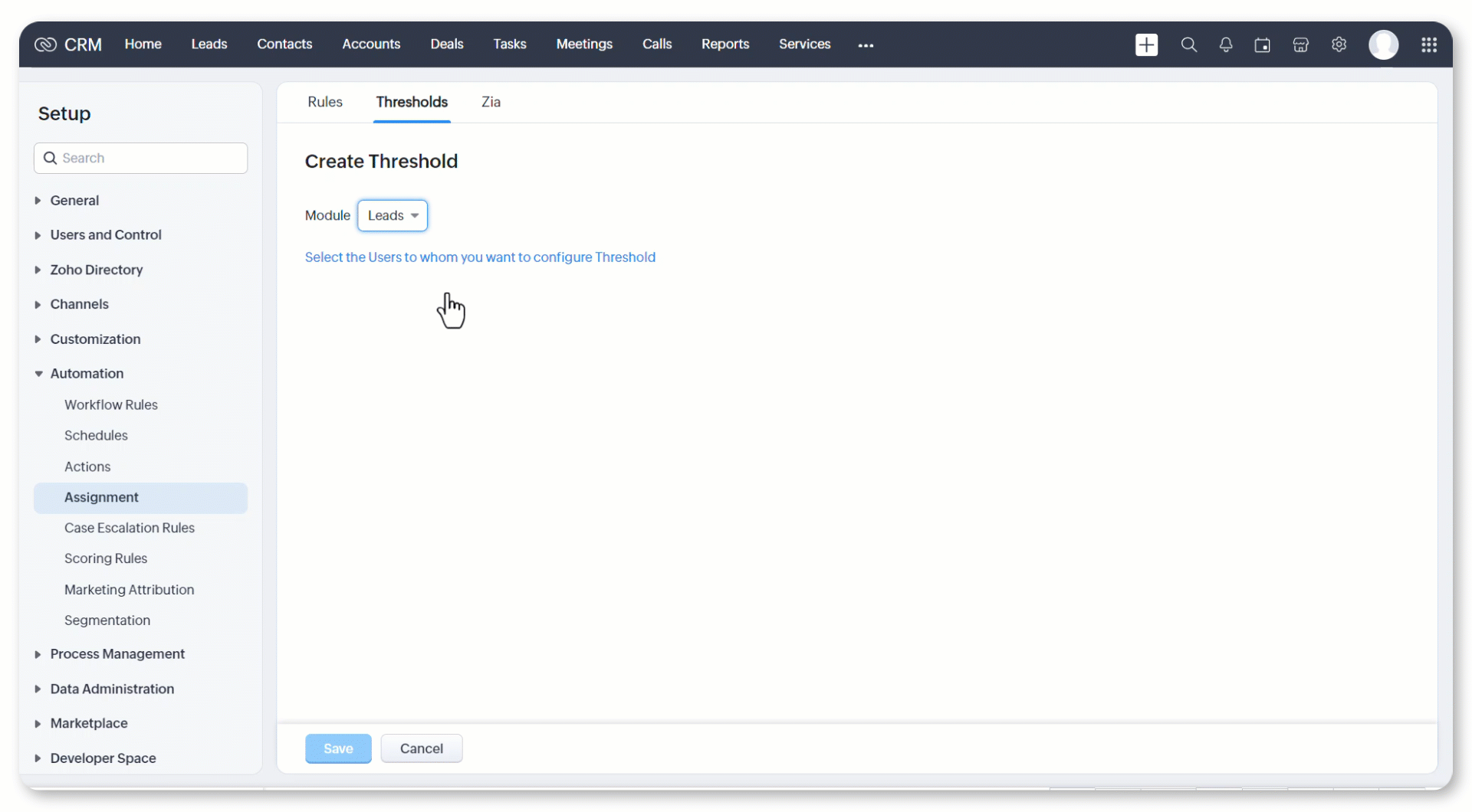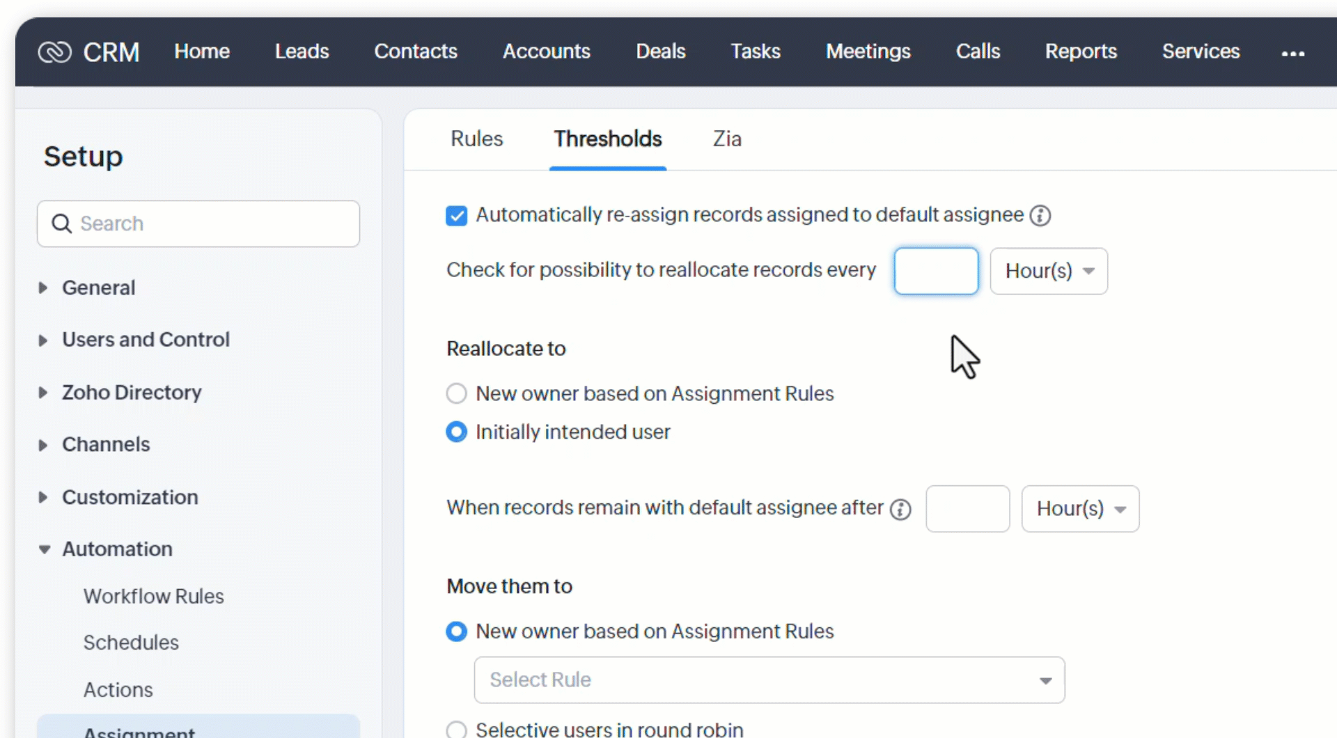 - 转到 设置 > 自动化 > 分配规则 > 阈值。