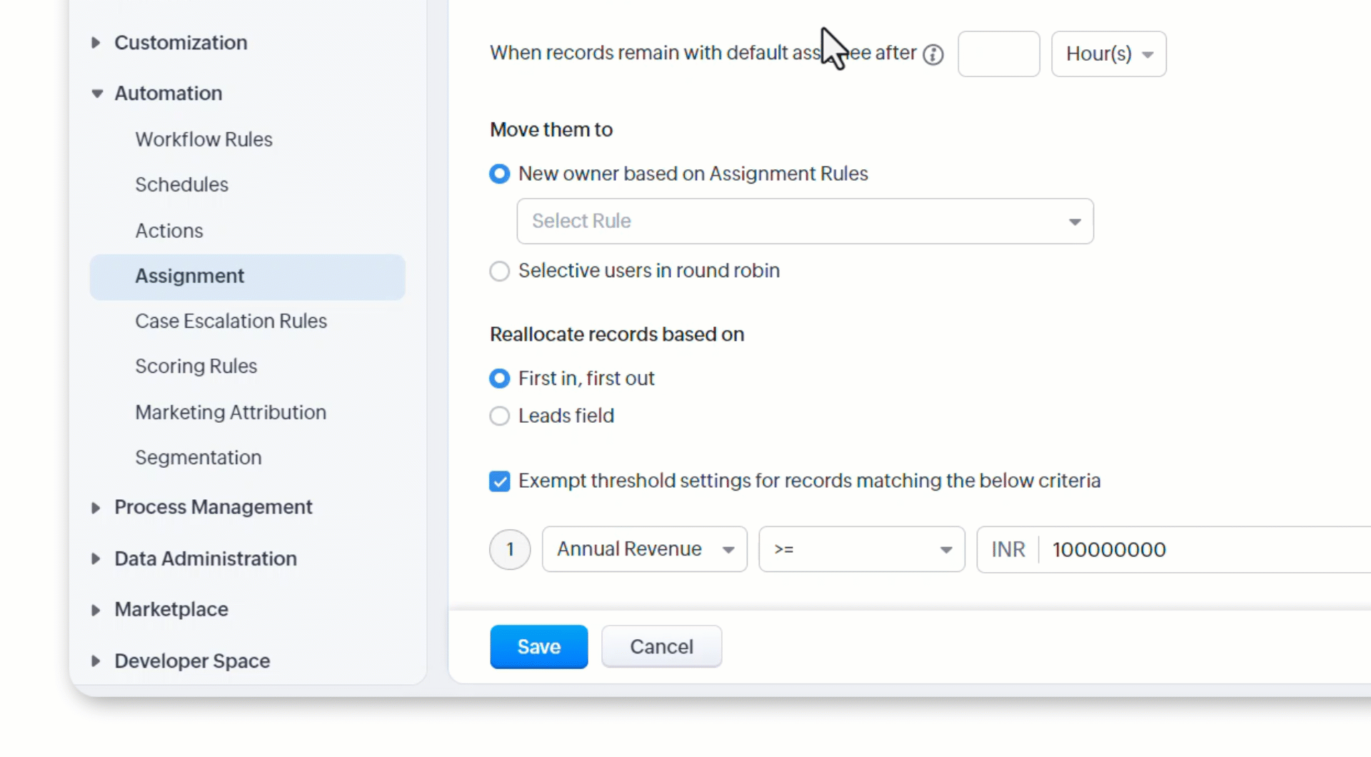 备注 : 一旦记录保留在默认被分配人超过阈值中设置的持续时间,它将被分配给用户(由您的配置指定)。即使它违反了该用户的阈值也会分配。