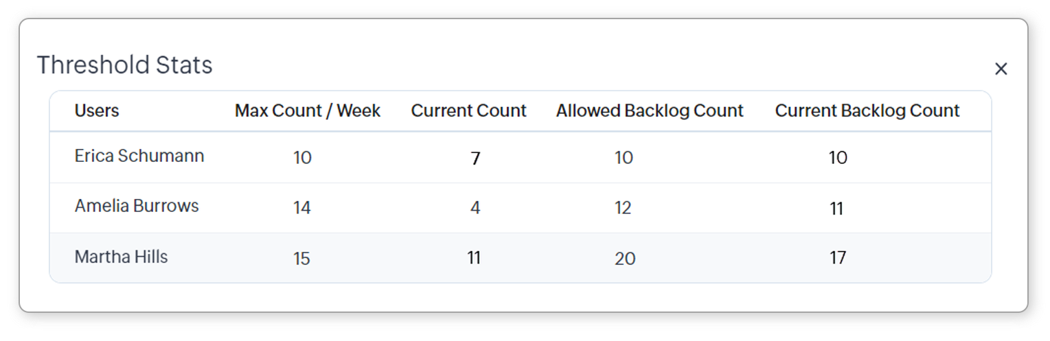 若要避免这些问题,可以根据不同用户的工作处理效率为其分配相应阈值。随着您的员工业务变得更加熟练,您可以在需要时定期提高阈值。