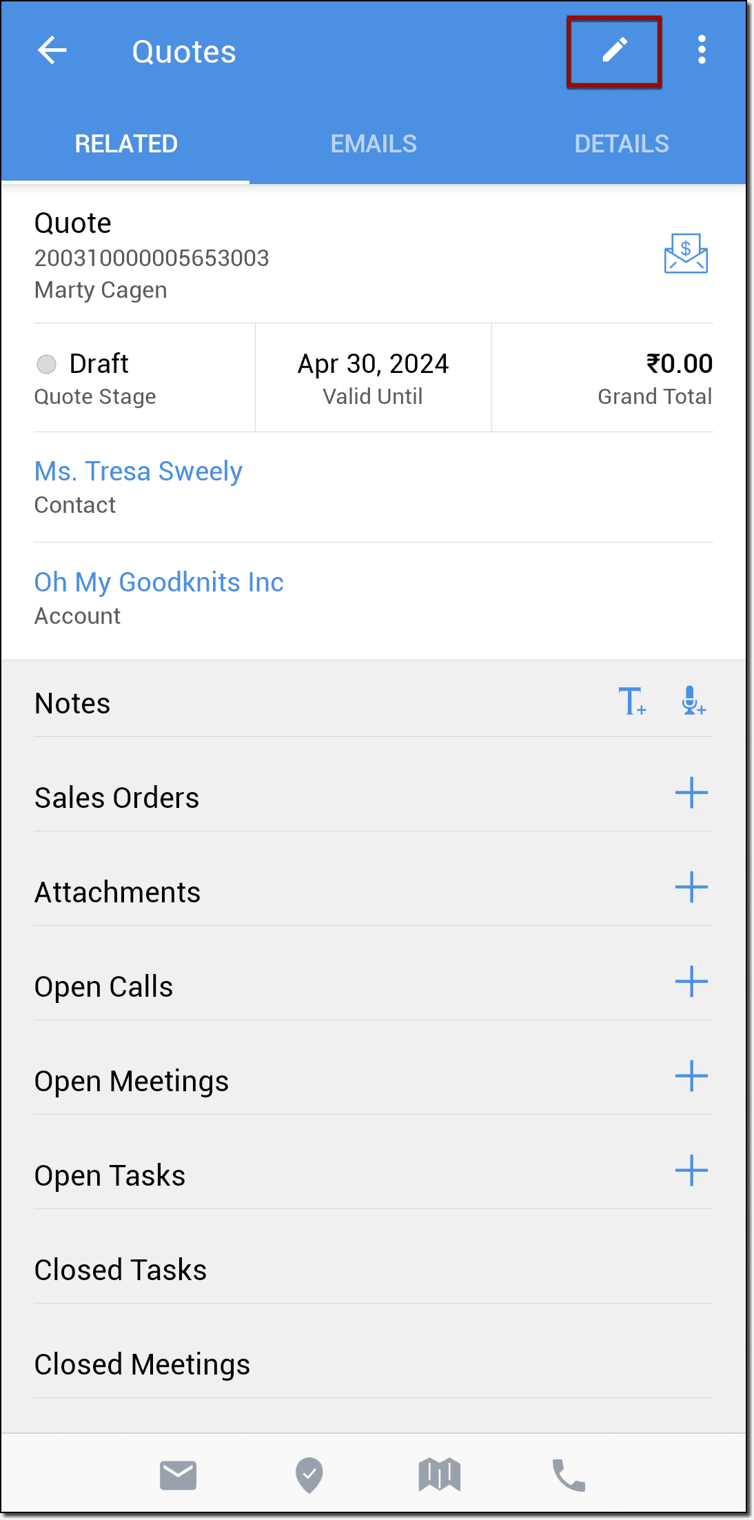 - 在报价的相关页面,点击您想关联的记录类型旁边的