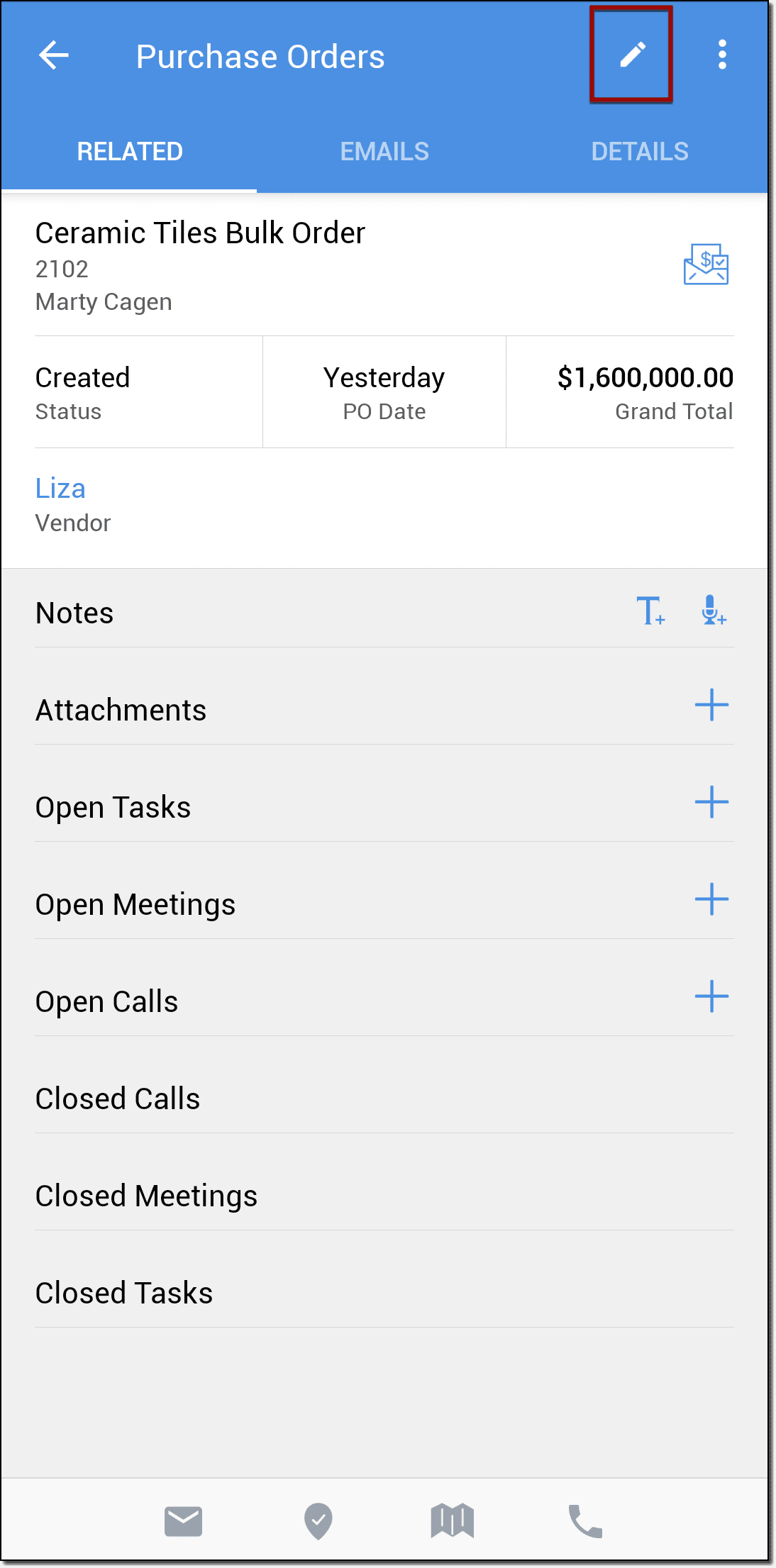 将相关记录添加到您的采购订单中,例如活动、附件和备注。