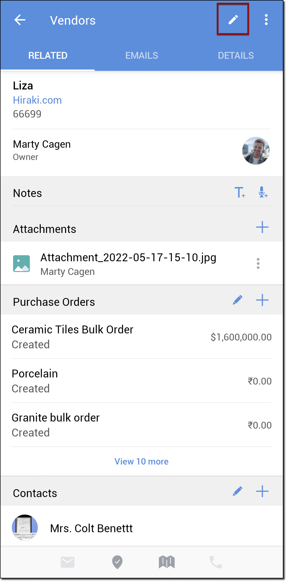 不仅仅可以输入供应商信息,您还可以通过将供应商与 CRM 中的其他记录(如产品、活动、联系人和采购订单)关联,为每个供应商创建一个 360 度的视图。