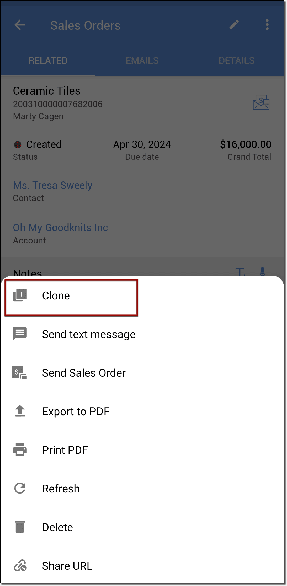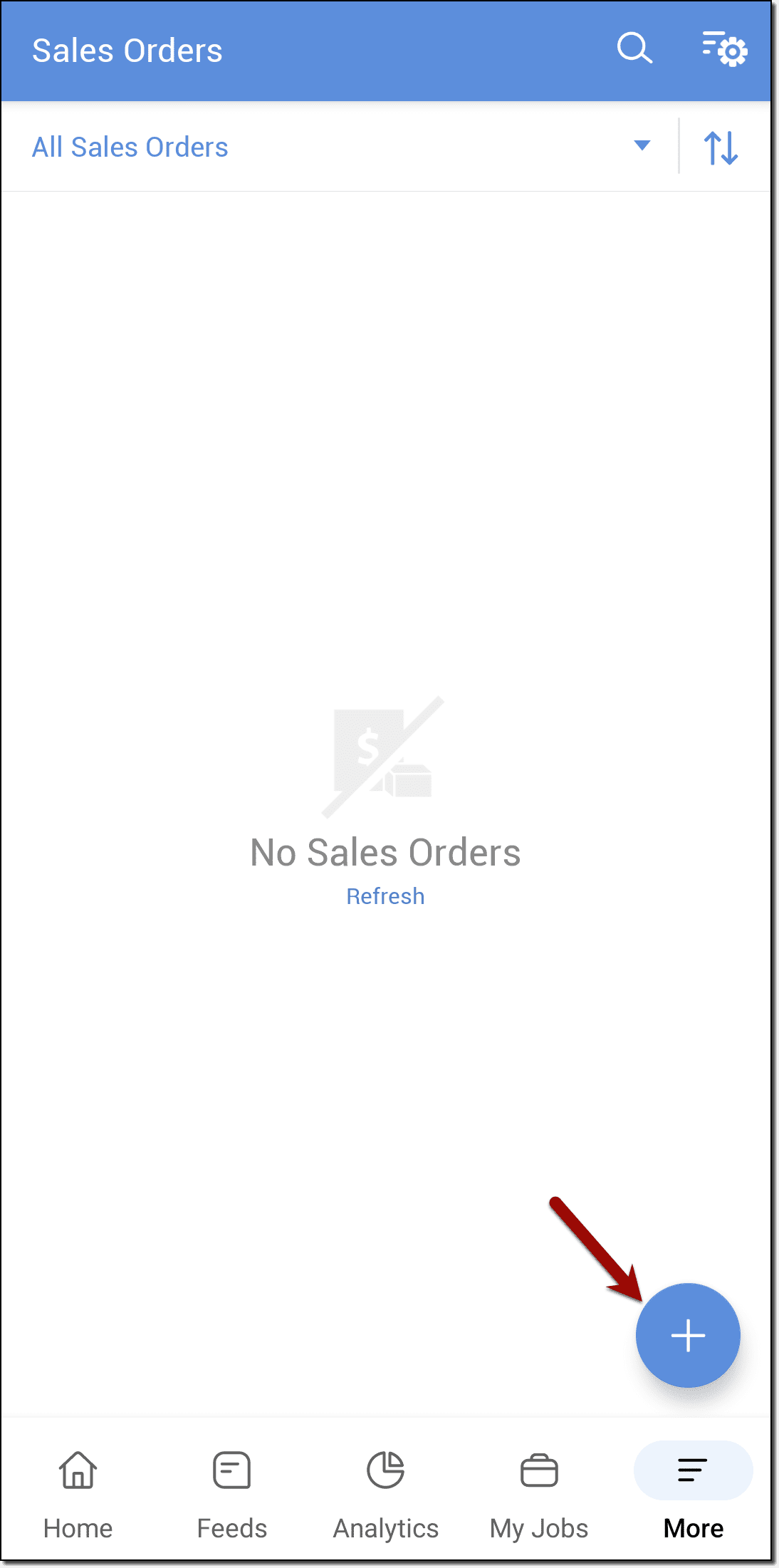 您只能在安卓应用中通过手动在销售订单表单中输入数据来创建销售订单。