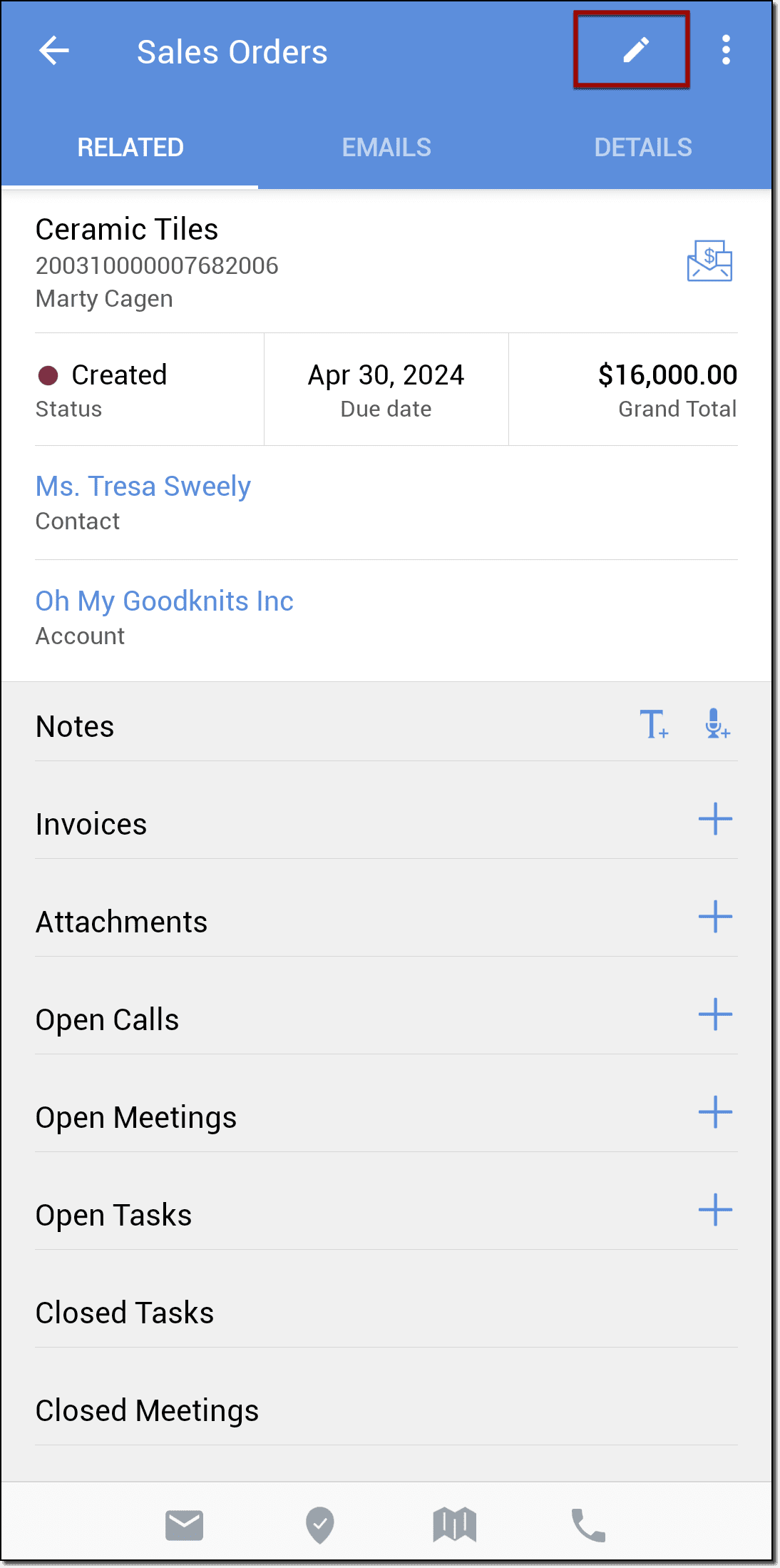 向您的销售订单添加其他记录,例如销售订单、未关闭活动以及所有已完成活动的列表。