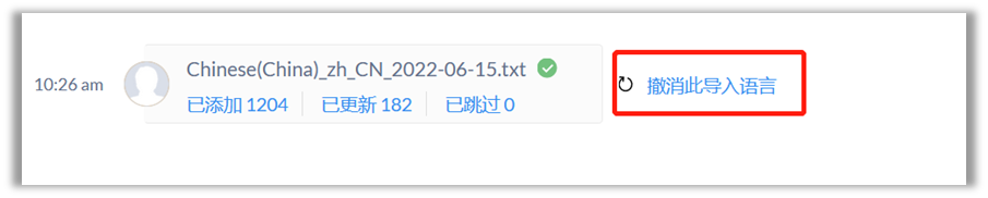 如果导入了错误的语言文件,或者不想使用导入至 CRM 的文件,那么您可撤销此操作。撤销后,Zoho CRM中使用该文件进行的翻译将被撤销。