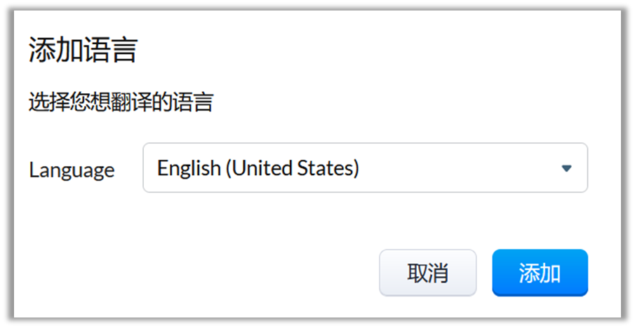- 在 添加语言 弹出窗口中,从下拉列表中选择语言。