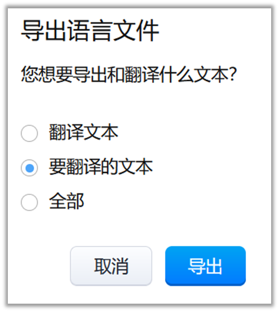 点击对应您添加的特定文件的导出链接。或者,选择 全部导出 选项一次导出所有语言文件。