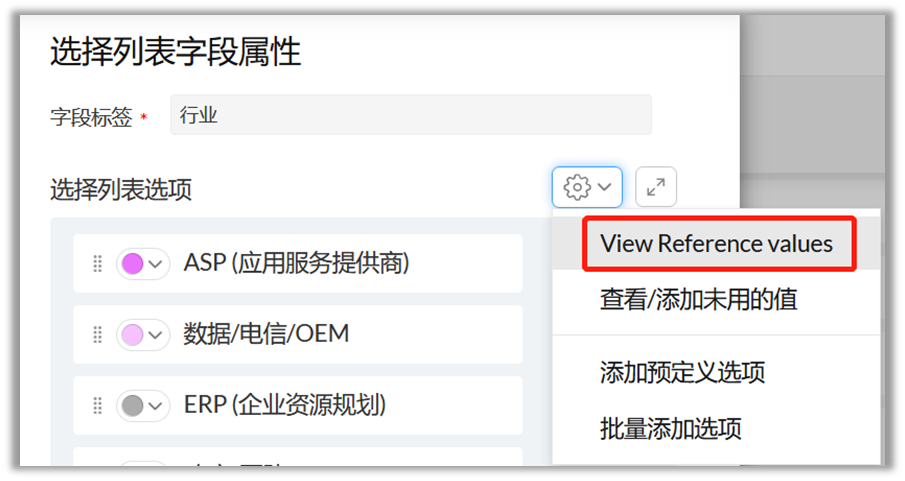 - 在 选择列表属性 弹出窗口中,选择查看参考值。