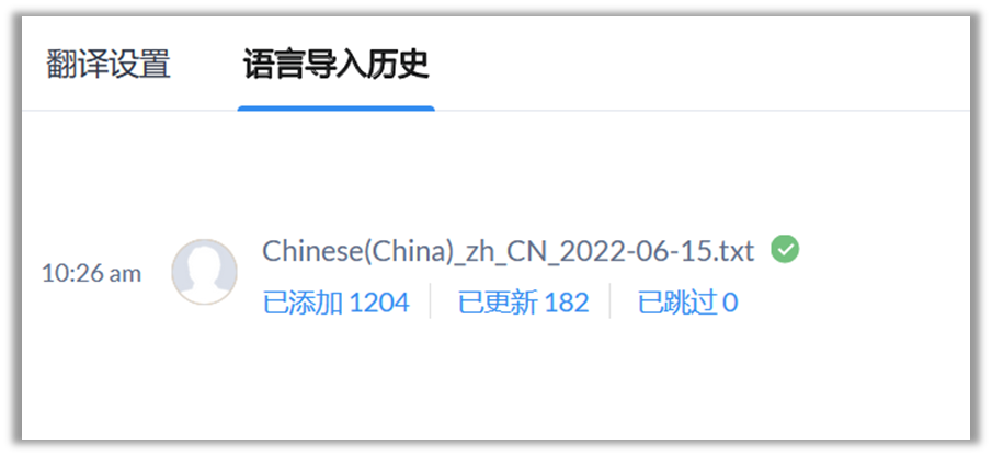 - 在 翻译 页面中,点击语言导入历史记录子页签。