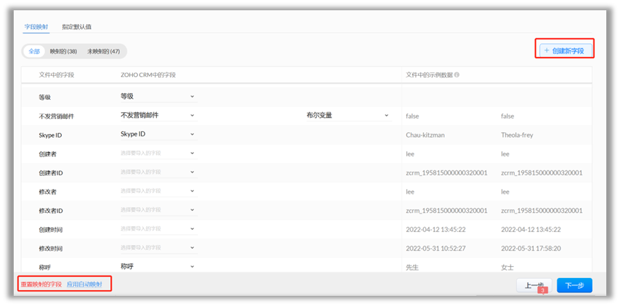 将导入文件中的字段与Zoho CRM子表单中的相应字段进行映射。