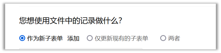 从下列选项中选择一个: 作为新子表单,仅更新现有的子表单,或两者。