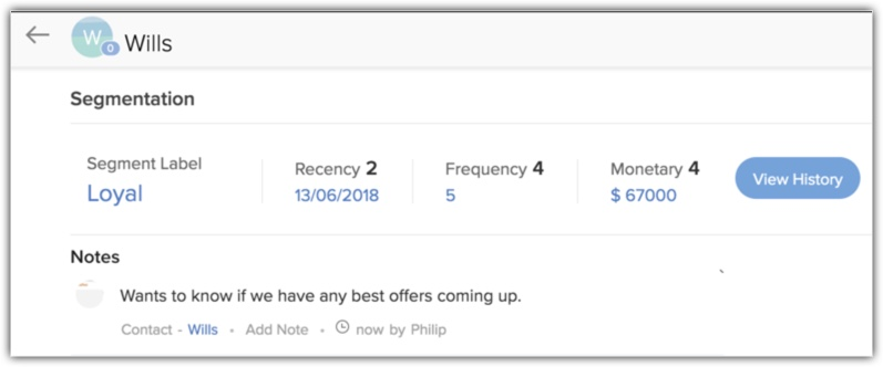 根据您设置的得分,系统将计算该记录(客户/联系人/商机)的 RFM 指标并显示在记录详情页面中。