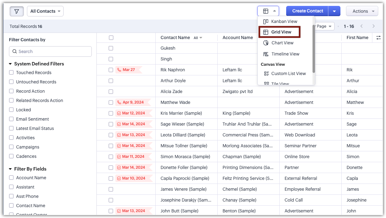 Zoho CRM 中的网格视图是什么,它是如何增强记录管理的?
