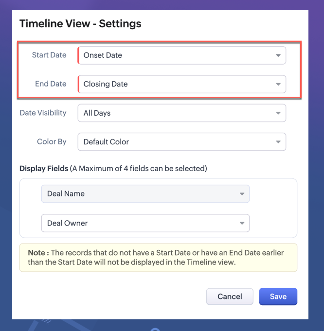 注意使用默认颜色编码或基于颜色启用的选择字段来着色记录。默认颜色编码表示: