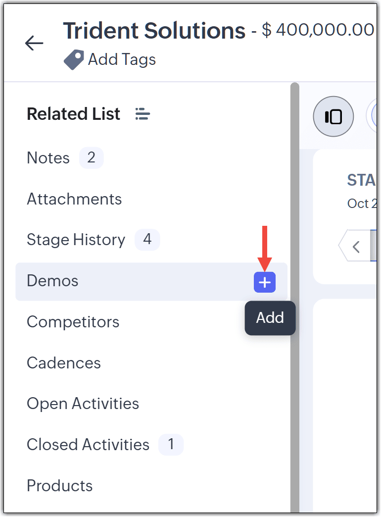 例如,如果预销售演示团队模块与商机模块相关联,打开商机记录,转到预销售演示相关列表,然后点击添加或新建。这将打开带有自动填充商机的请求表单。