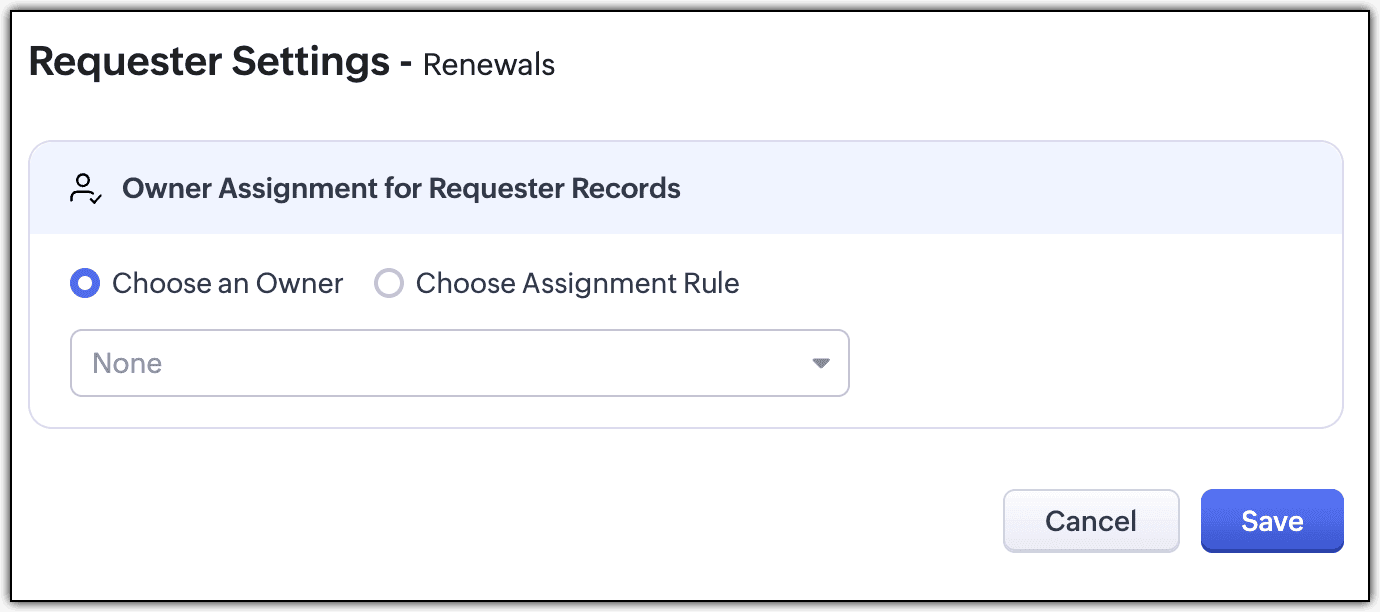 - 如果没有指定特定用户,系统将自动将管理员设置为请求者创建的记录的所有者。