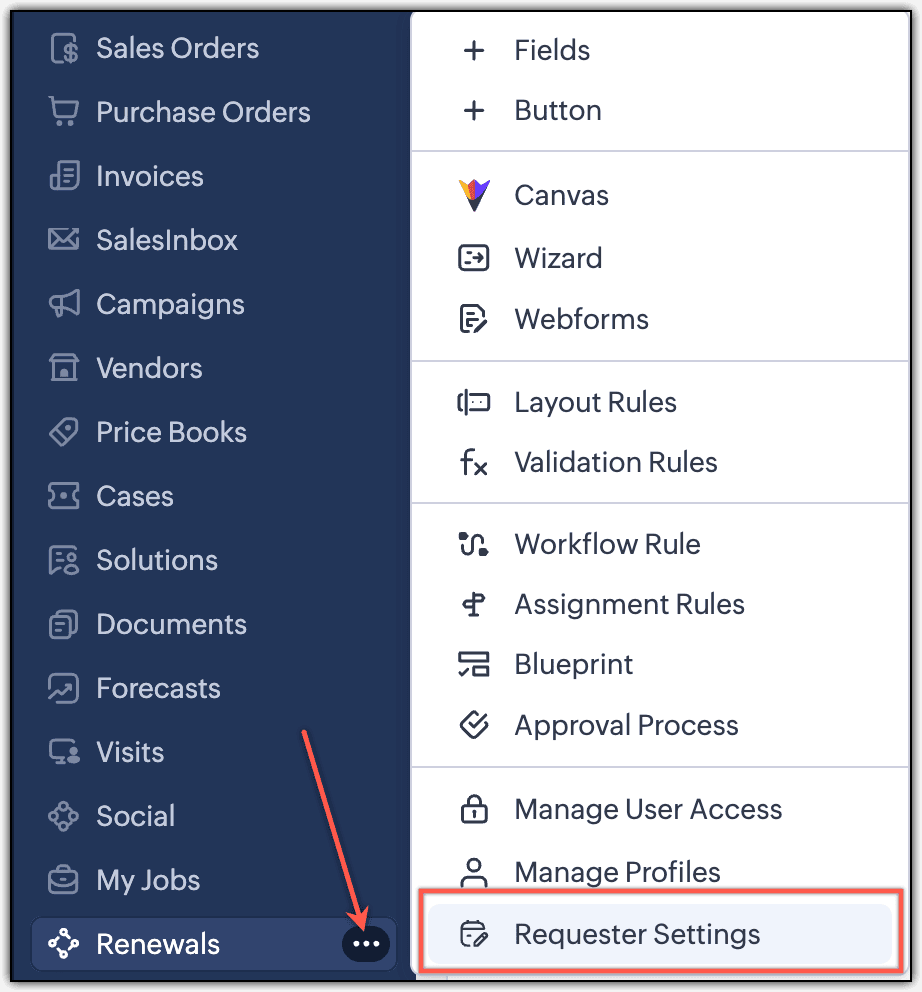 Zoho CRM 中的请求者页签和请求者