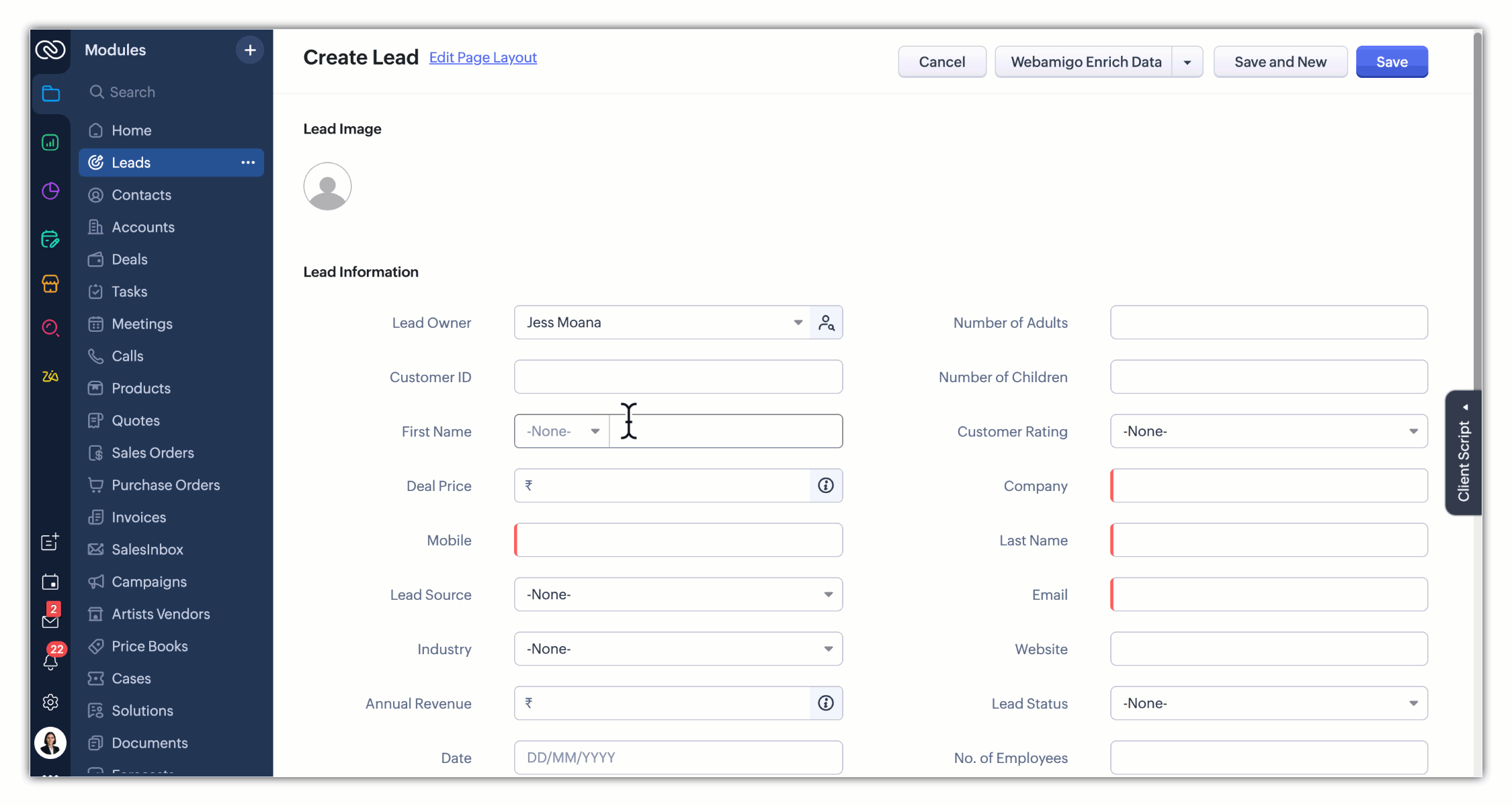 根据 Zia 从网络上获取上下文信息所依据的 CRM 字段,将丰富值与之关联。点击