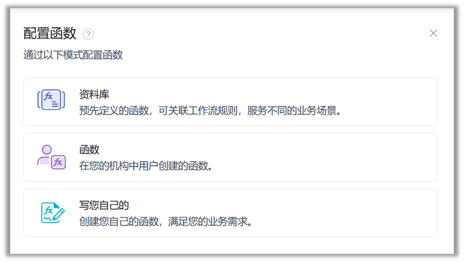 在 配置自定义函数 页面,通过以下方式配置函数:资料库,现有函数或使用 Deluge Script 写新的函数。