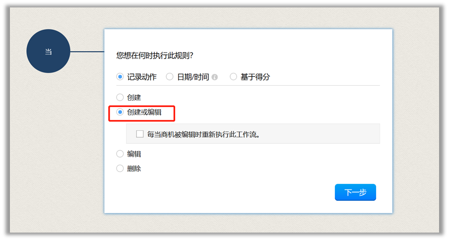 - 打开设置 > 自动化 > 工作流规则 > 规则> 新建规则用于商机模块。