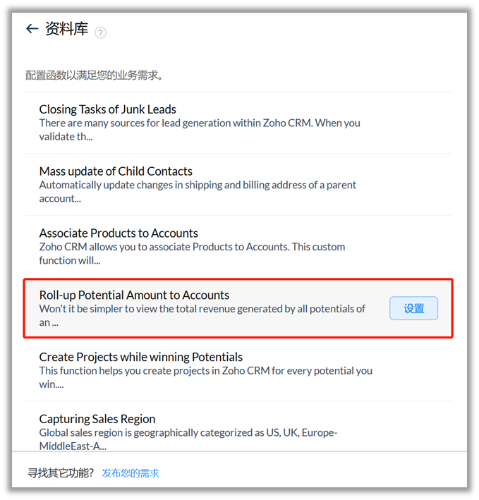 在 资料库 页面,点击设置Roll-up Potential Amount to Accounts(将交易额计入客户名下)。