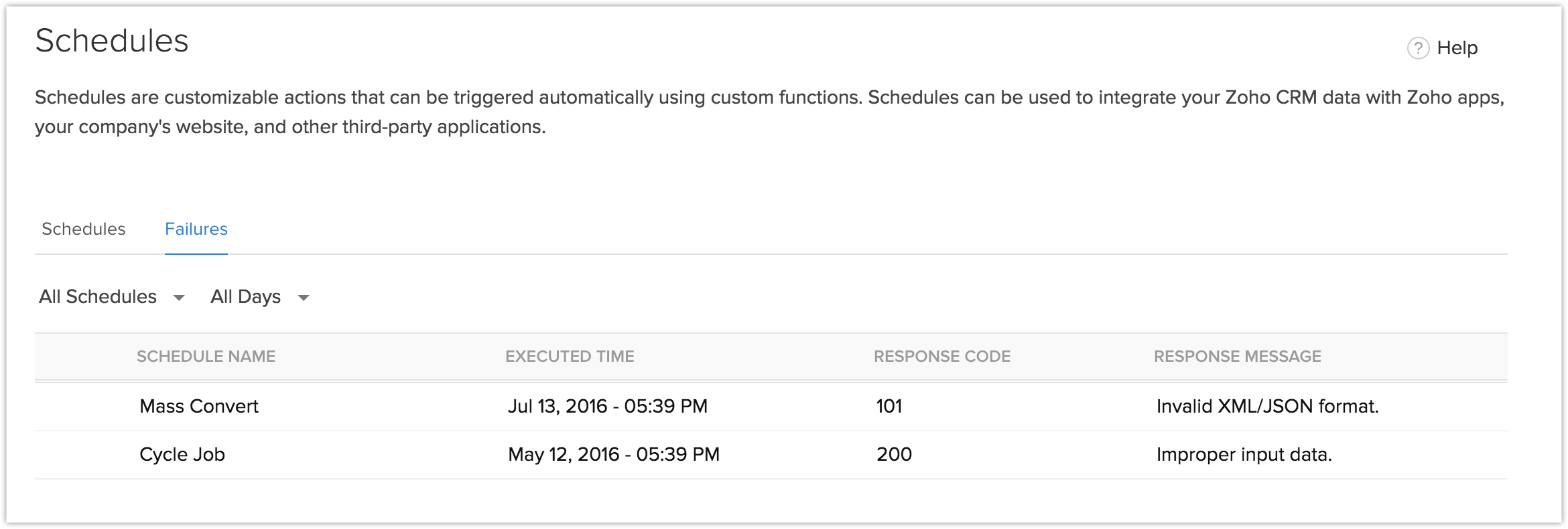 计划支持将您的 CRM 数据与公司网站/内网、任何第三方应用程序或其它 Zoho 应用集成。 例如,您通过使用计划可以: