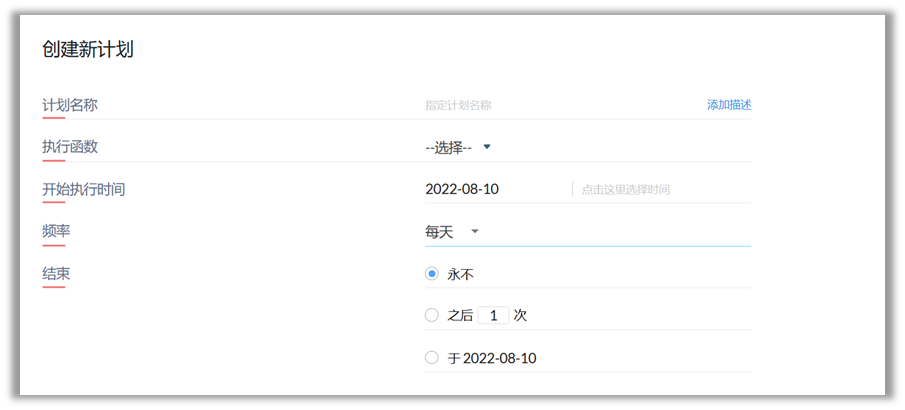 - 选择应执行自定义函数的 开始执行日期 和 开始执行时间。