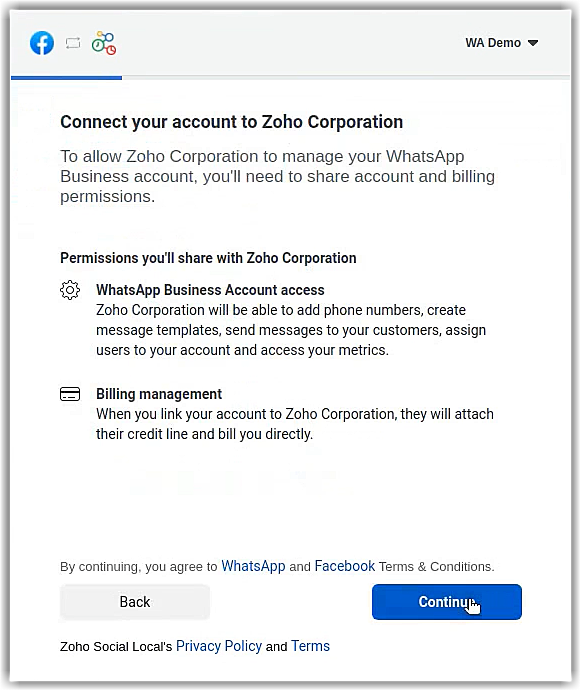 3. 在 WhatsApp 访问请求页面,登录Facebook Business Manager账户。