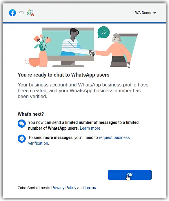 • 一旦您的业务得到验证,将由WhatsApp服务条款 WhatsApp商务政策对其进行合规性审查。