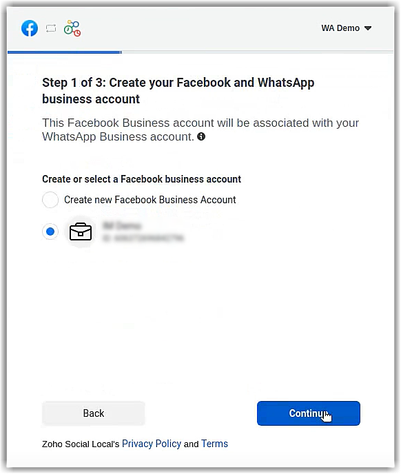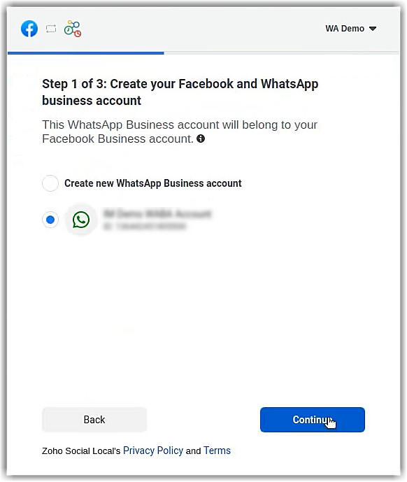 7. 创建一个新的 WhatsApp Business账户,或者选择现有的账户。