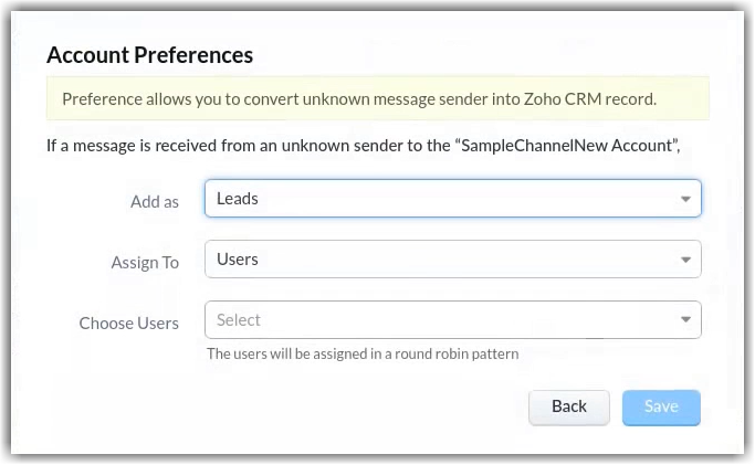1. 提供用于CRM内WhatsApp Business简档的昵称。