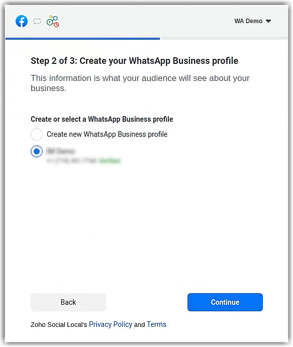 2. 选择要关联到WhatsApp Business简档的电话号码。
