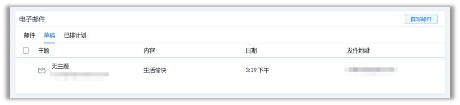 最小化撰写窗口并转至其它模块。草稿将自动保存在记录相关列表的电子邮件下,您可以从这里访问。同时可打开五个撰写窗口。
