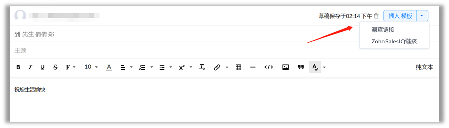 在Zoho CRM中,用户可以直接给线索,联系人,商机等发送电子邮件。从各个模块撰写和发送的电子邮件不能定制,按照系统定义的字体,颜色和样式,用户需要手动定制。