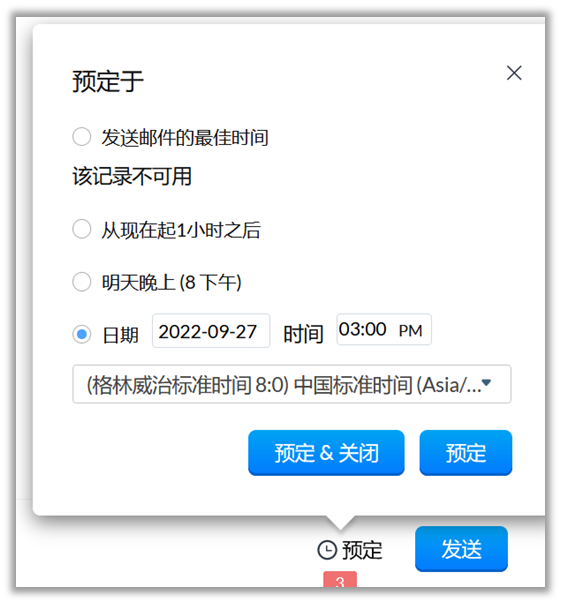 最小化编写窗口后,电子邮件图标将显示在CRM底部面板。您可以点击重新打开窗口。